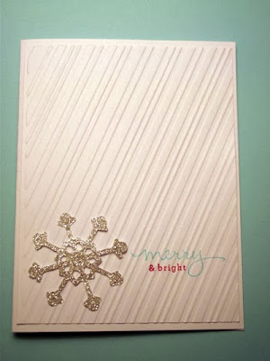 I made this simple Christmas card for the Stamping Royalty challenge #205. The challenge is to make a card with Snowflakes. I made it simple and only used one. It didn't come out the way I envisioned it, but it will do. I am going to have to tweek it a little more but I am not feeling well so it will have to wait. Merry Christmas everyone!